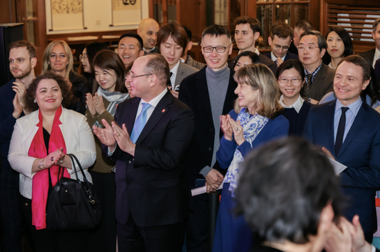 法国驻上海总领事王度 ,法国驻华大使馆文化、教育与科学事务公使衔参赞艾文鸿与比利时、加拿大、卢森堡、魁北克和瑞士等联合主办国家及地区驻沪总领事及机构代表,AI在教育中的应用以及意大利、爱尔兰和乌拉圭总领事共同出席 。